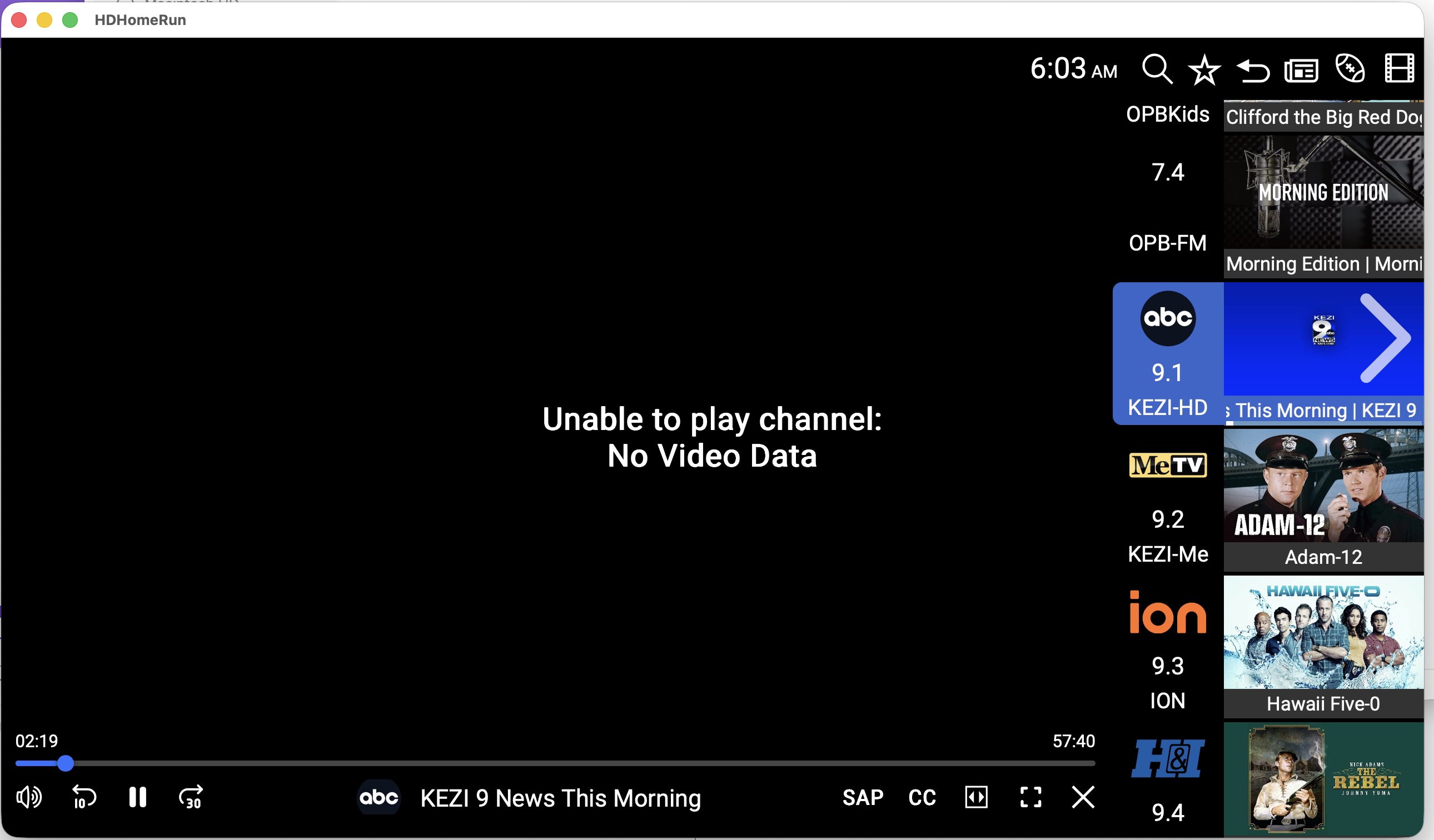 My OTA source has started working now. I thought it just too coincitdental that both OTA (channel 9.1) and TVE (channel 6001) sources would quit working at the same time.
