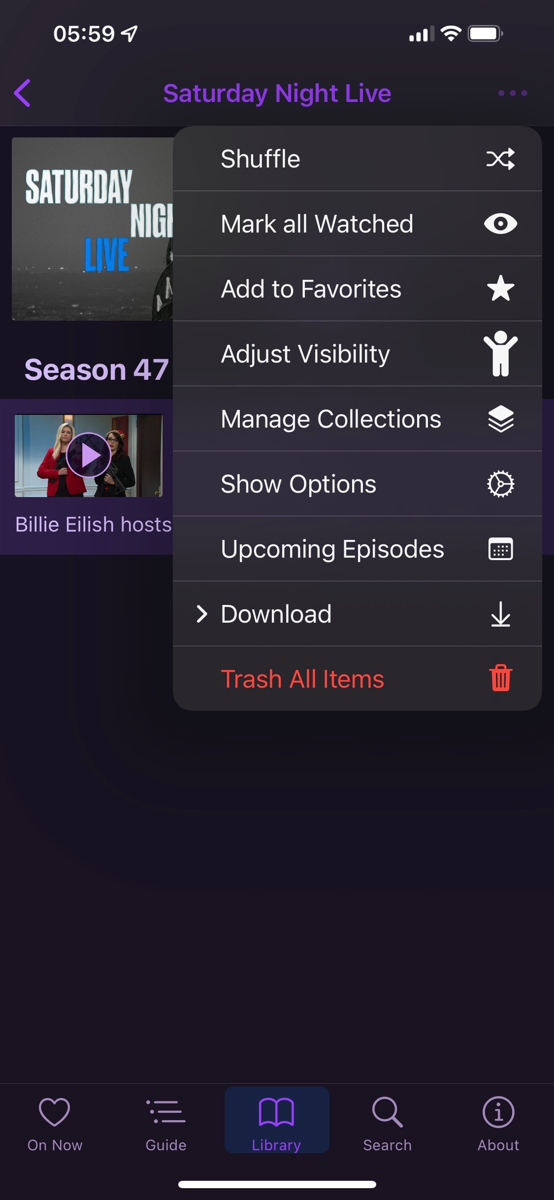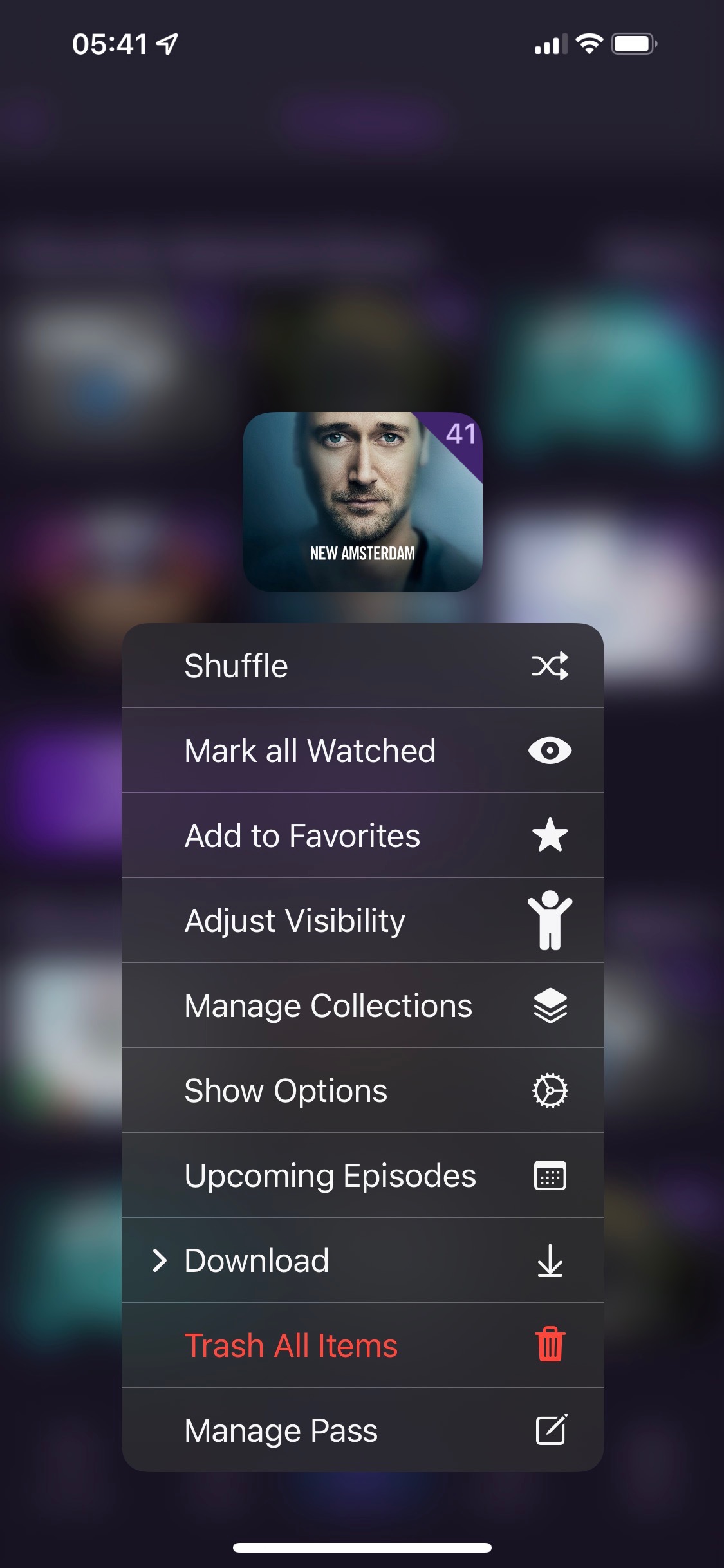sorry about that. I can do it both on the IOS and ipadOS app. when looking at the TV shows that show the quantity in the folders I can long press that folder and it will give me the option to "trash all".