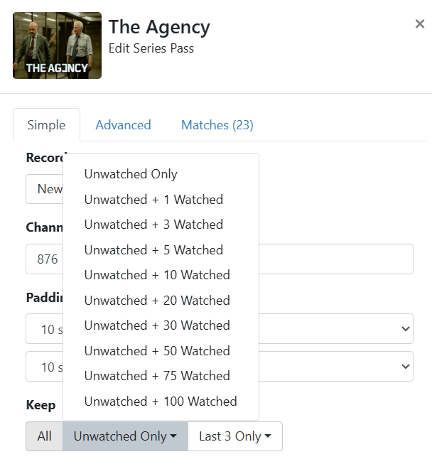 Can't you setup the Pass to do this for you ? Keep unwatched only.