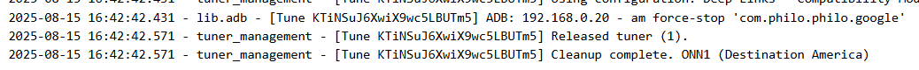 2025-08-15 16:21:19.582 - tuner_management - [Tune CPC24ZmWYajSRgihcRf2Rd] Cleanup complete. ONN1 (Destination America)