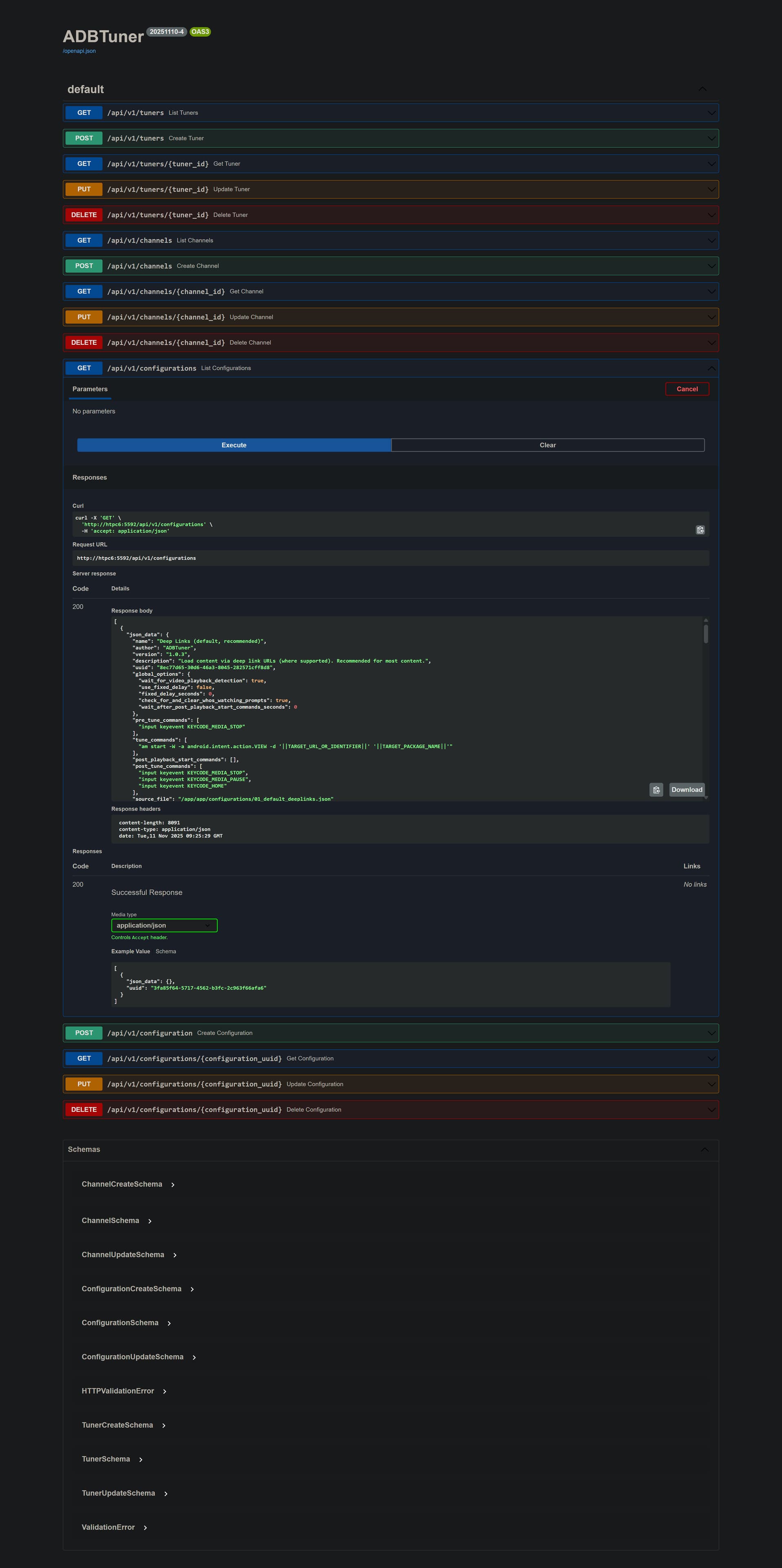 The other question is whether it's possible now, or would you consider adding, a way to POST a JSON payload (using curl) for both adding channels to an ADBTuner installation and adding a custom configuration?