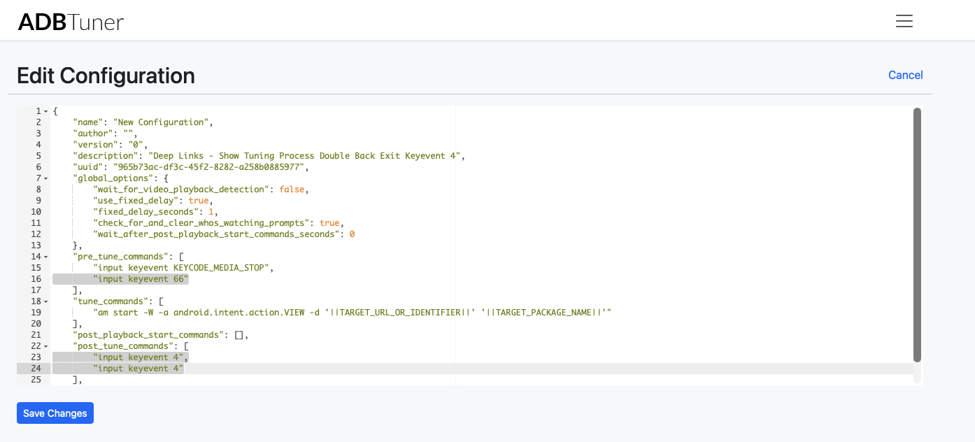 I created a custom ADB configuration to test a few things to get around this: