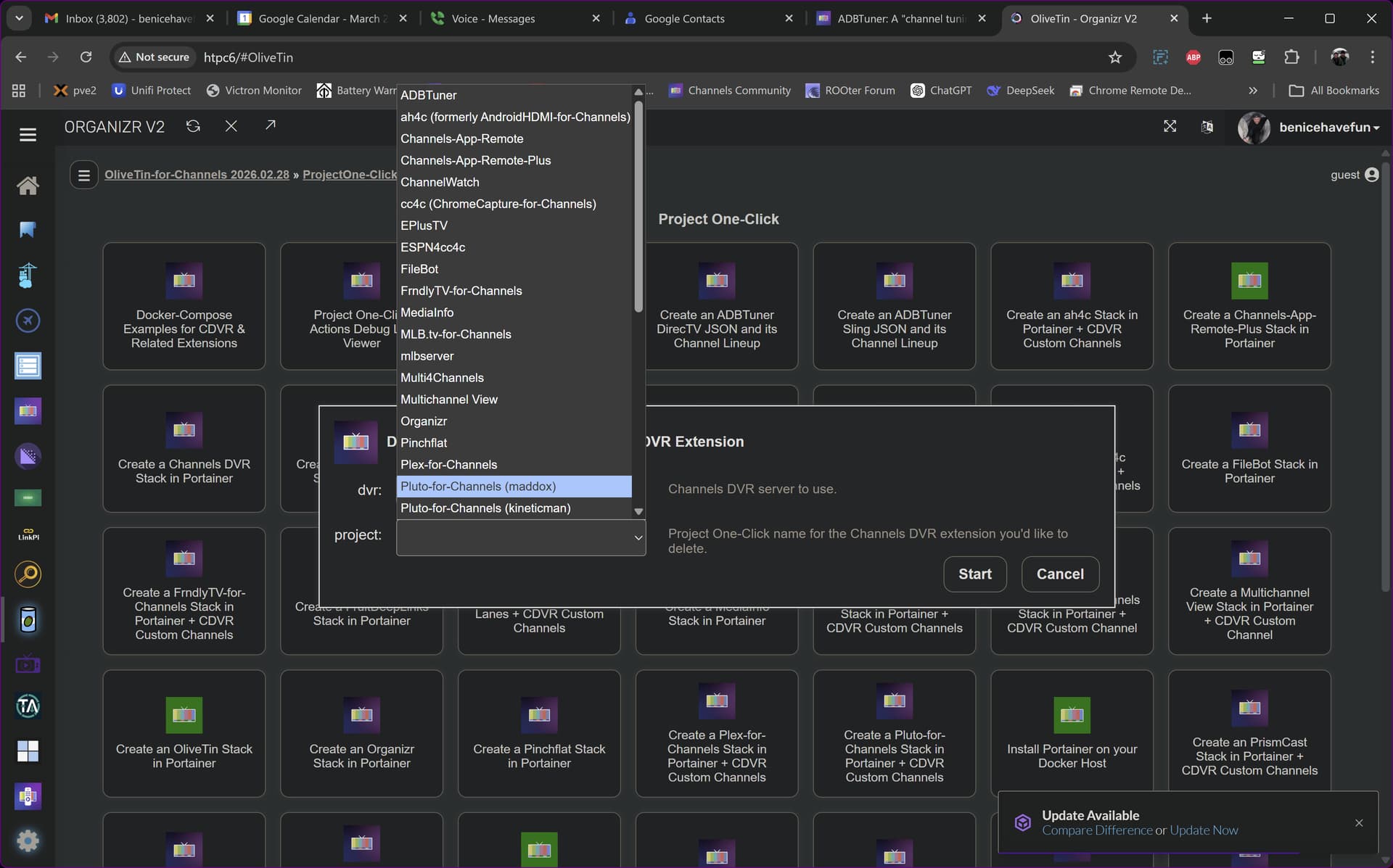 I'm running Docker on Debian Linux. I have Docker running, and Portainer is one of the containers running on it, as is Channels, CC4C (not that it can do much on this current hardware) and (as of an hour or so ago) ADBTuner (plus some other stuff, including Stream Link Manager which I have struggled with making useful).