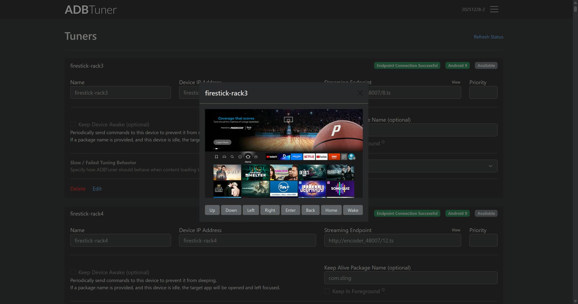 Just got Google TV streamer. Olivetin project 1 click built ADBtuner perfectly. Trying to setup w Hulu Live. Was able to add 3 channels via adbtuner app and that worked well and they are in guide (ESPN is one of them). ADBtuner app shows Endpoint Connection Successful (green), Android 14 (green), Available (grey). Tried to watch ESPN by selecting from CDVR guide on google phone app. Google TV device plugged into a TV for now. Jtech encoder is online and has worked before but nothing plugged into its HDMI (since Google TV device plugged into TC so I can monitor it). Got "Oops. There was an error playing this video error" from Hulo when I clicked on ESPN cannel from CDVR guide. Logs from adbtuner container are below. Any help is appreciated. I did edit out some redundant lines from log about "waiting for tuner", etc.