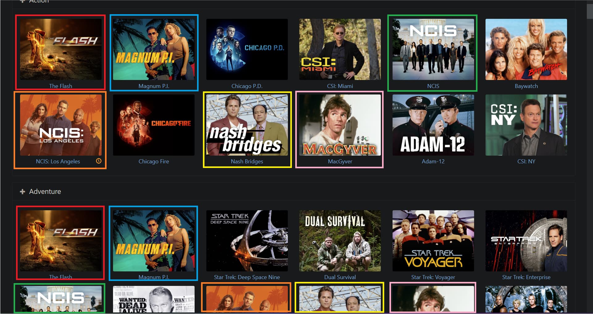 But within those categories, I find it isn't easy to pin shows I'm interested in to a specific genre. Say I like crime shows. Sometimes those fall under "Crime", sometimes "Crime drama", sometimes "Action" or "Mystery" or "Thriller" or "Drama" or "Law" ... you get the picture. And they all have slightly different lists of shows in them.