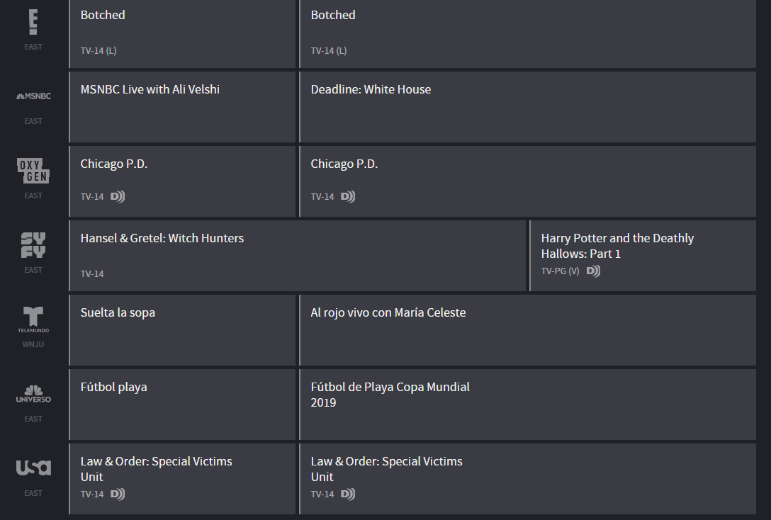 In the latest build (v2019.11.26.2140) I've added telemundo (if you have TVE locals experimental option enabled) on ch6330. I've also added Universo.