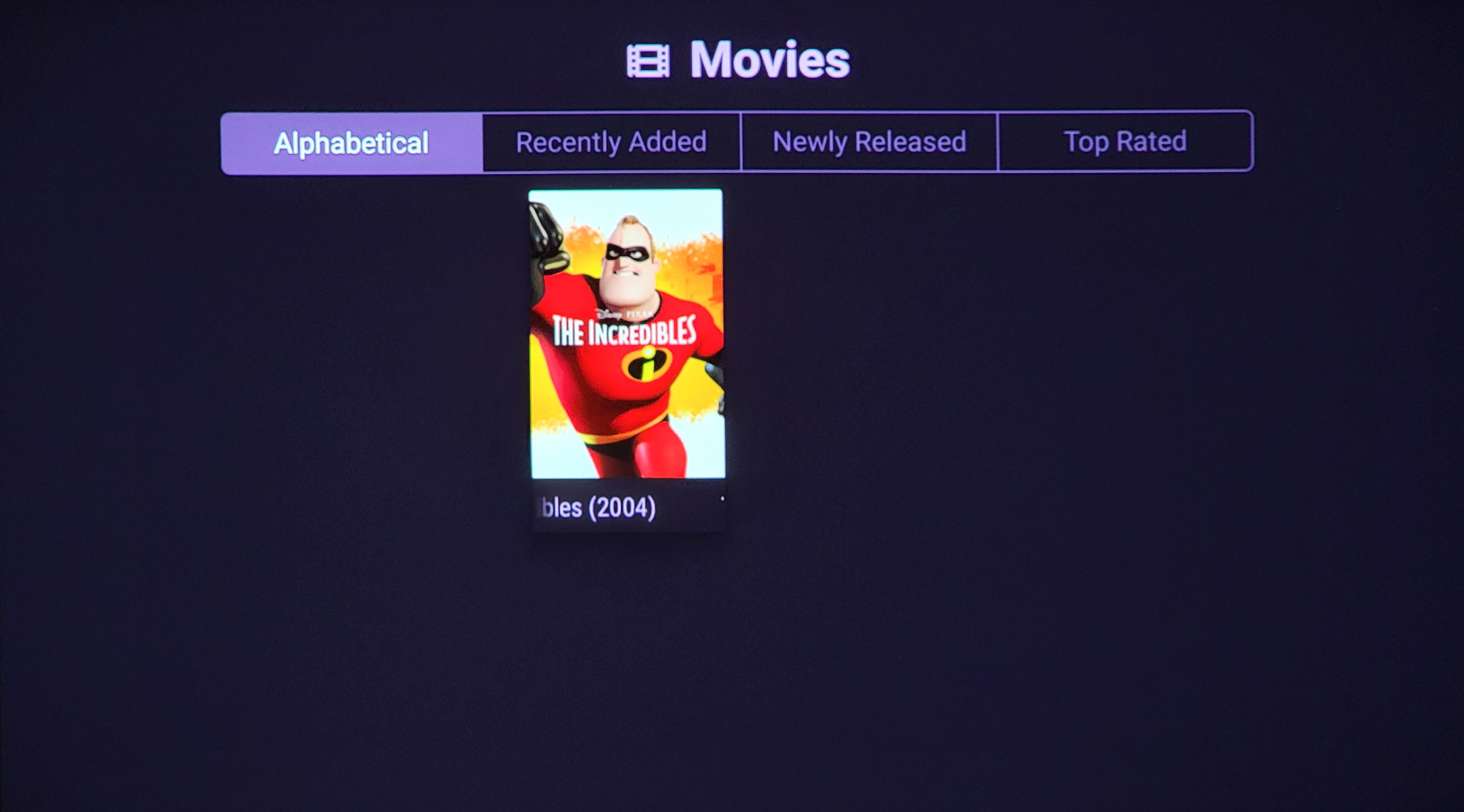 Then, I briefly played part of a movie from the Web UI, and only that movie (The Incredibles) was now visible (and playable) on the app, while all others were missing. I repeated this with another movie, and it too was then made visible.