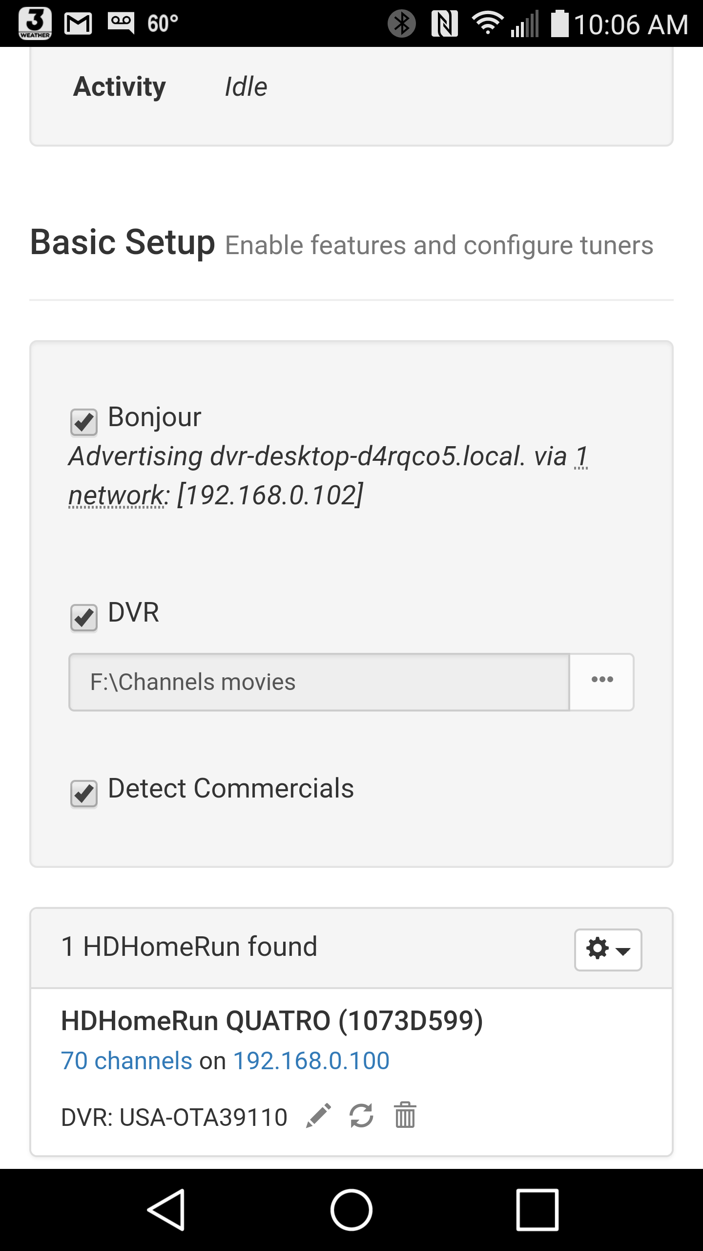 I used the channels dvr app from my lg android phone play store. After I installed it the dvr storage location only offered me a few locations none of which was I using on my Win 10 server. It ended up with selection of a usb drive that had no saved channels info. That same drive now shows up in my server settings tab. I tried to change the drive back to the one I am actually using for storage on my server channels DVR settings tab but there is a red circle over the DVR storage selection and it will not let me restore the setting to my original choice. Meanwhile the DVR guide had dropped all the guide information but it has now restored it and that part is OK.