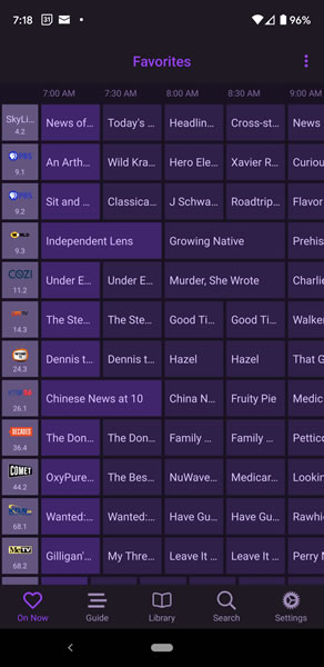 The app opens into your last-used activity - in the example below, the Guide - but at the bottom of the screen by default the "On Now" icon is always highlighted. Same thing if it opens in Library or another view, the "On Now" icon is lit up. But what I'm looking at is not "On Now".
