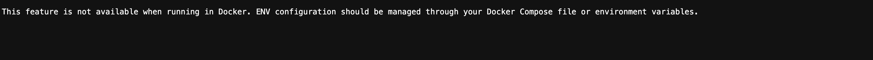 "This feature is not available when running in Docker. ENV configuration should be managed through your Docker Compose file or environment variables.".