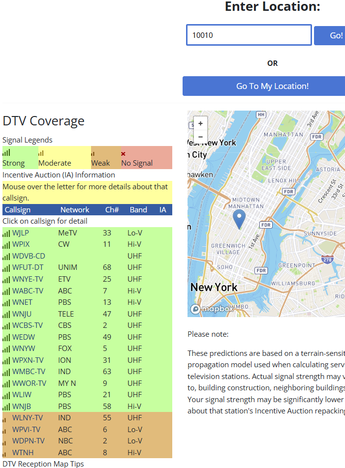 But I no longer get those channels for a good number of days now. After numerous rescans of channels by HDHomeRun setup tool and fiddling with the antenna positions even tho I knew that was needless. I do still get the ATSC 3.0 channel WNBC-HD ch 104.1 at 100% strength, but due to DRM it only tunes for a second then goes away so I cannot watch it. Also, WNBC has no presence in the coverage list anymore; see the image below.