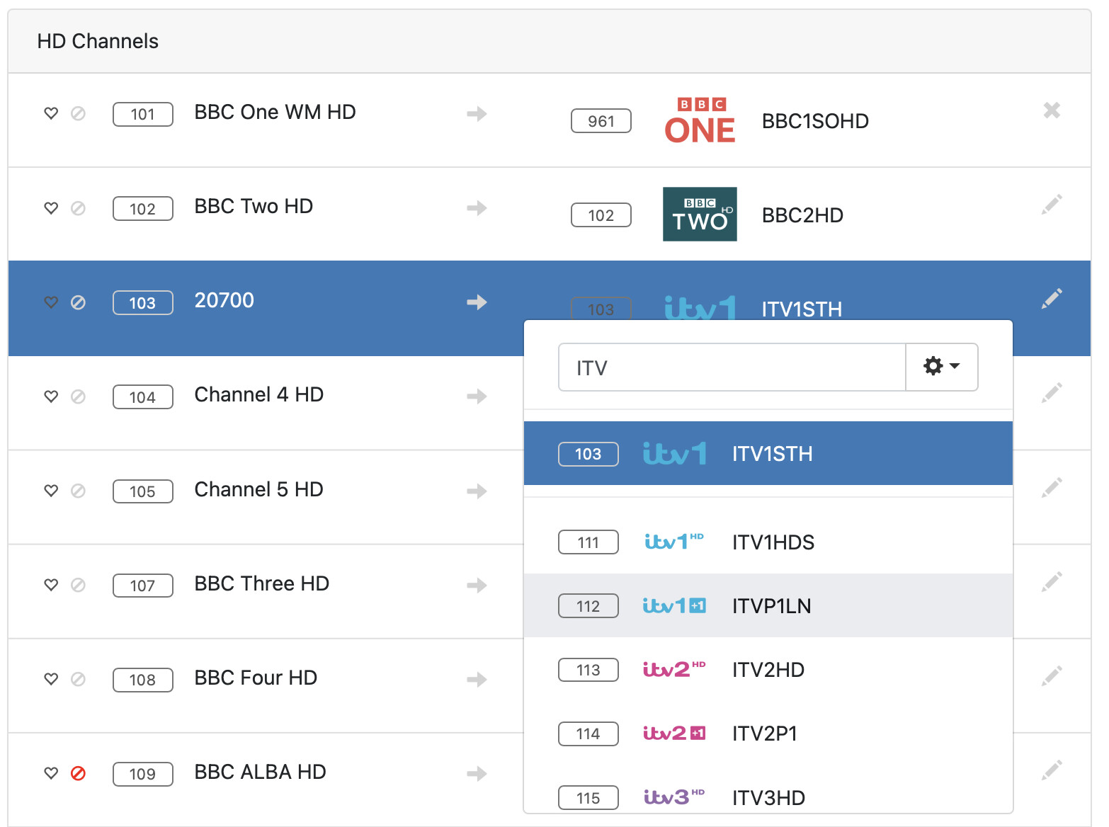 That means in Channels it also won't appear by name so maybe your mapping has been lost, but you can simply map Channel 103 - "20700" to the correct ITV1 EPG data for that channel.
