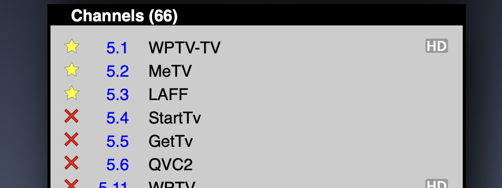 <Program><GuideNumber>105.1</GuideNumber><GuideName>WPTV</GuideName><VideoCodec>HEVC</VideoCodec><ATSC3>1</ATSC3><Favorite>1</Favorite><URL>http://192.168.69.72:5004/auto/v105.1</URL></Program>