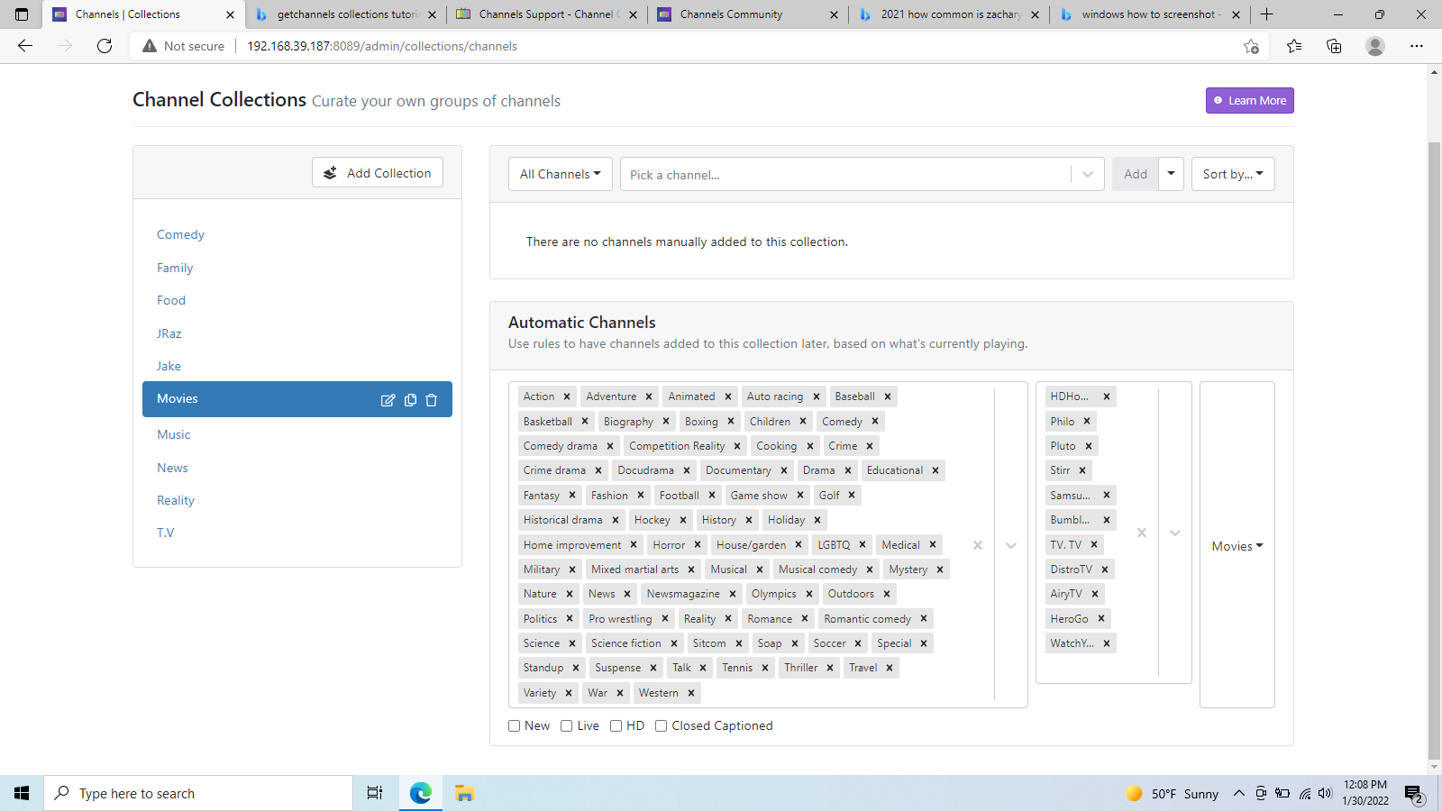Complaint: Im playing around with "automatic channels collections" . No matter what I do they wont show.