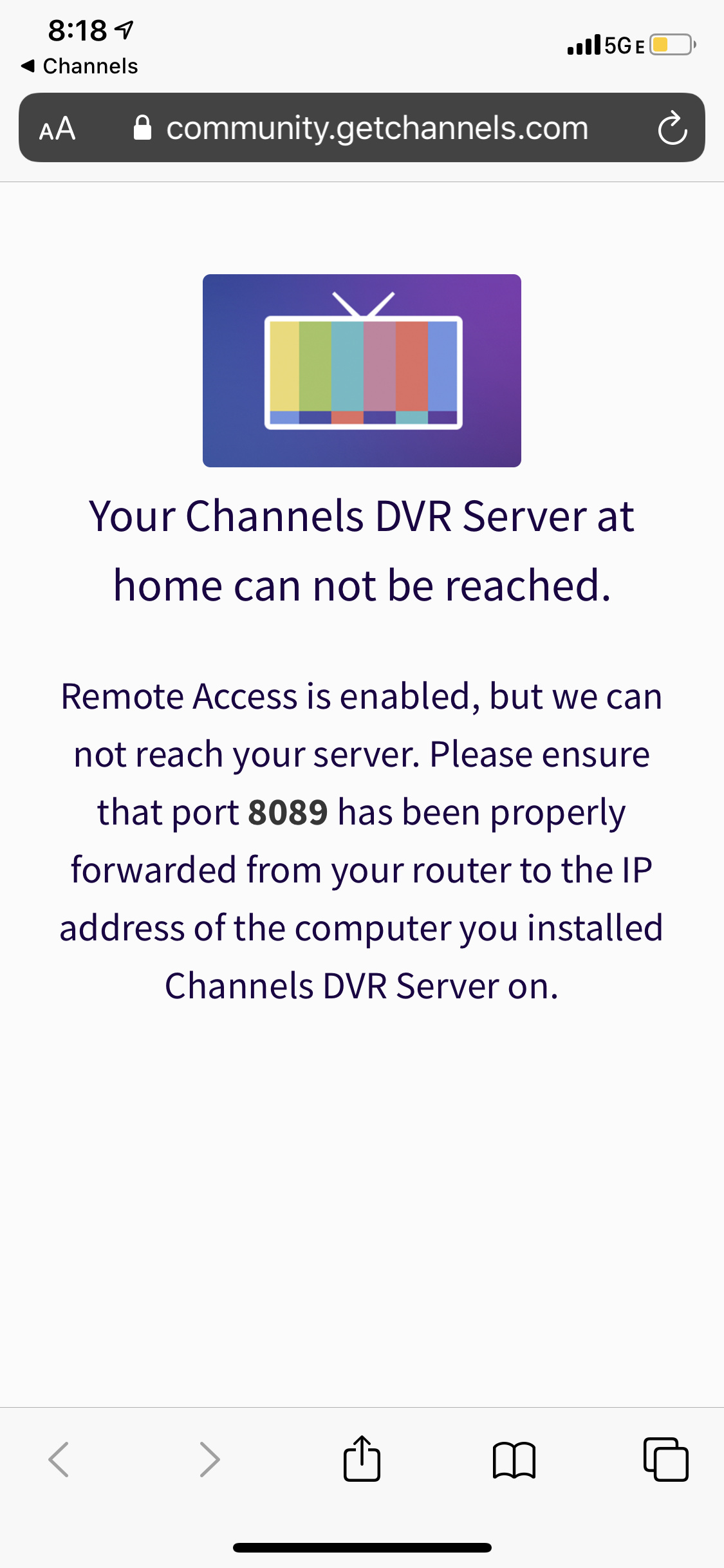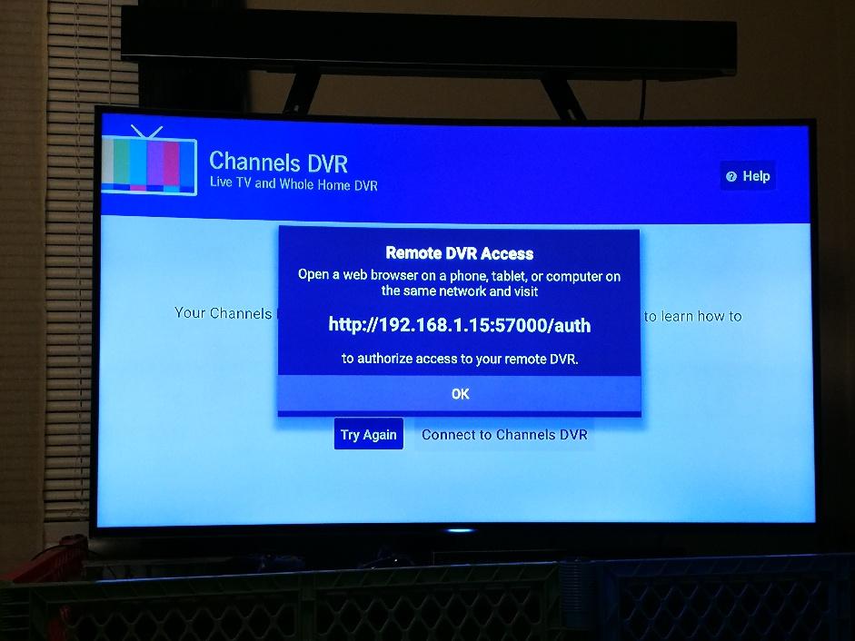 So I lent my daughter a fire stick tv with channels pre-setup. On her network, trying to connect remotely is presented with the http://ip:57000/auth.