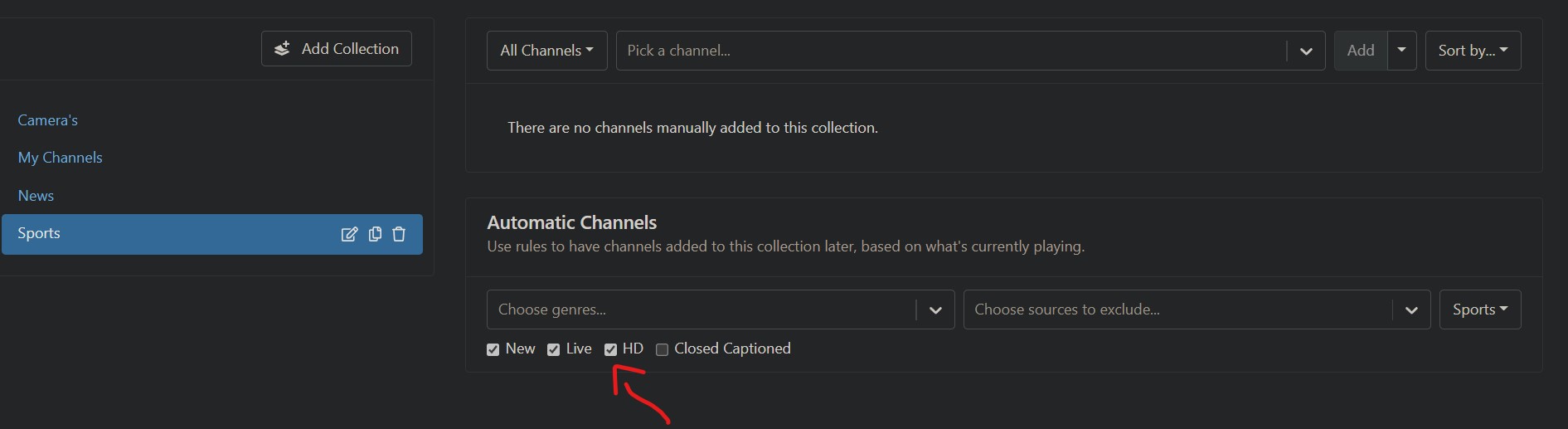 Also no matter what I do on smart channel collections I am unable to get any guide data using smart collection. No matter if I allow all sources or exclude sources, regardless if I check HD, NEW or Closed caption. I have tried selecting categories and leaving categories blank, I have also attempted to movies, tv and everything.
