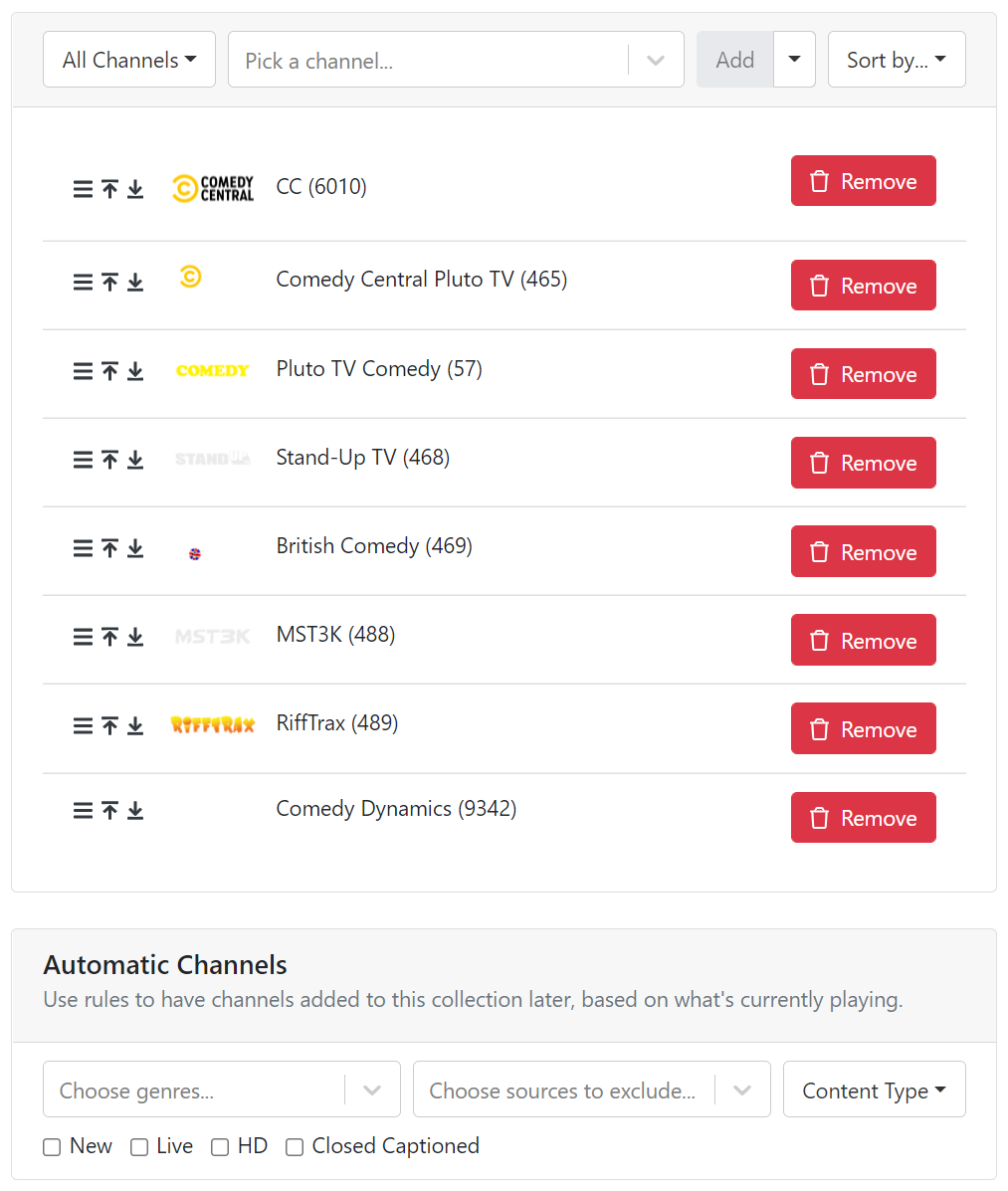 For example, in this "ComedyTest" channel collection, there should only be eight channels shown, but instead, all channels are appended, starting with channel 4.1: