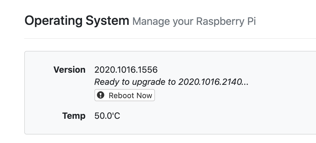 OS upgrades require a reboot, which will not happen automatically. When you click the Reboot Now button the RPI will power cycle itself and you will hear it make a short chirp sound.