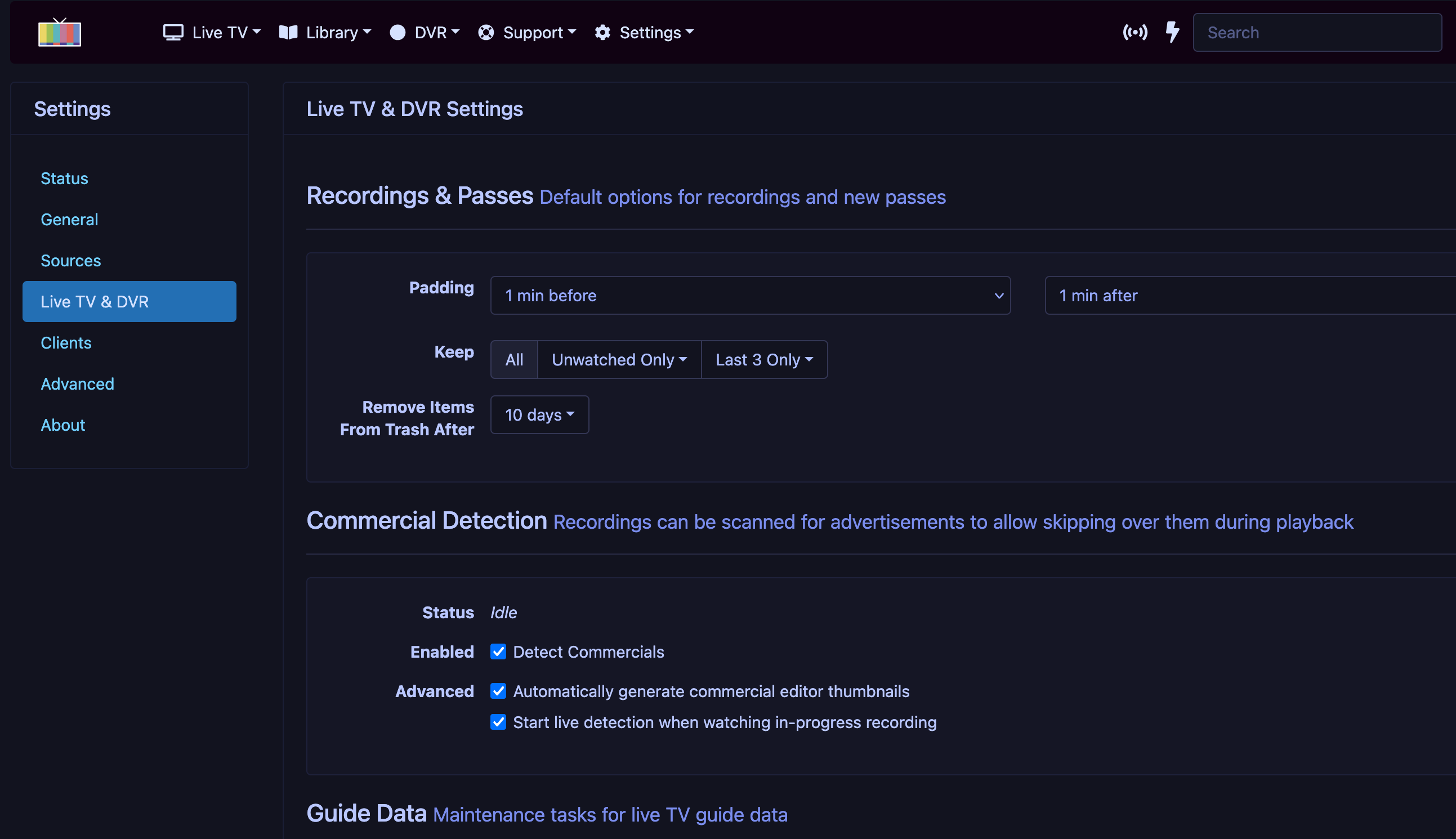 comskip.iniand make a backup copy somewhere else, then delete it from the data folder. - Restart the Channels DVR service/app