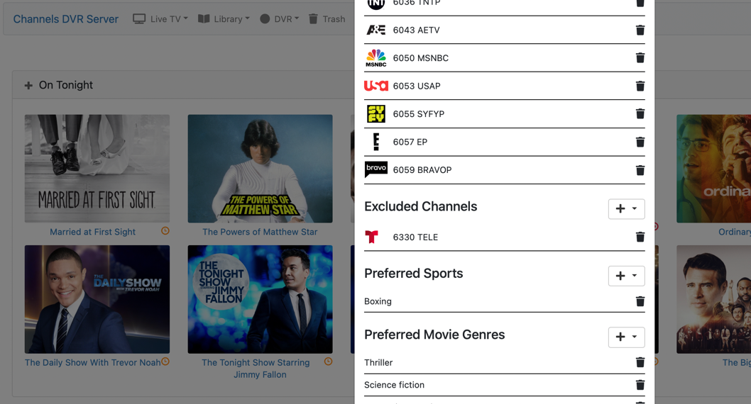 âOn Laterâ is recommending shows to me that air on channels I donât want, that I have marked on the Channels server to exclude, that I have disabled on the clients, and even that I have marked on the new âfine tuneâ menu as excluded channels.