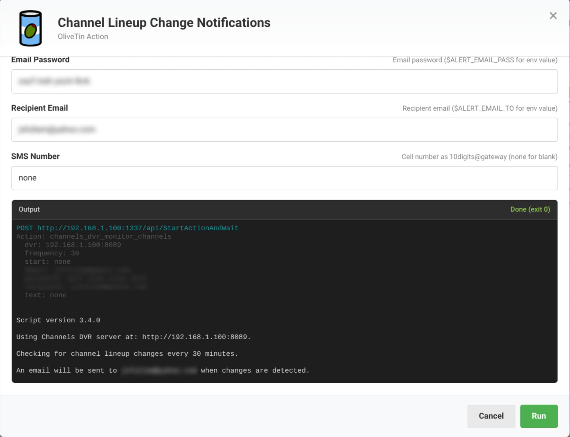 In this latest update to OliveTin-for-Channels, only standard output and actual errors should ever be displayed. Debug is routed to a file, in case we need to look at it. Overall though, the output should be greatly reduced. Hopefully, that will encourage a quick look-over to confirm desired function, and check for errors. That's the idea anyway.