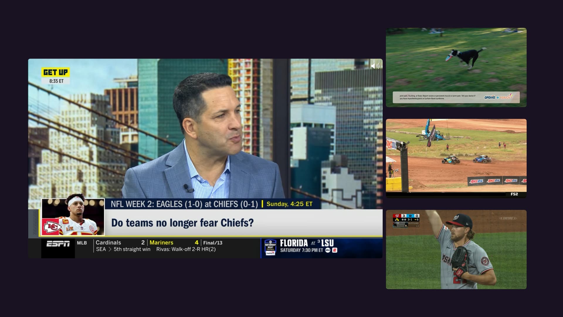 Simply launch Multiview from the context menu (select and hold) of a guide item or channel and you will be launched into the new Multiview experience. Watch > Multiview