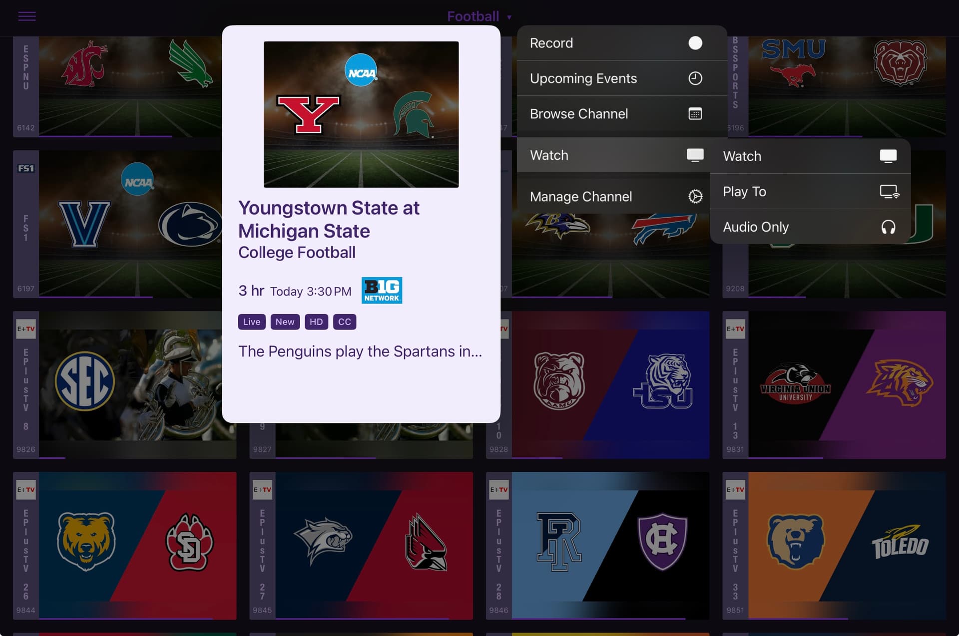 Sounds like what was just happening for me on Apple TV. 3x HDHR and 1x ESPN+ via EPlusTV. Video framerate would drop to like 4 fps on all feeds for 20 seconds every 20 minutes or so. Submitted diagnostics.