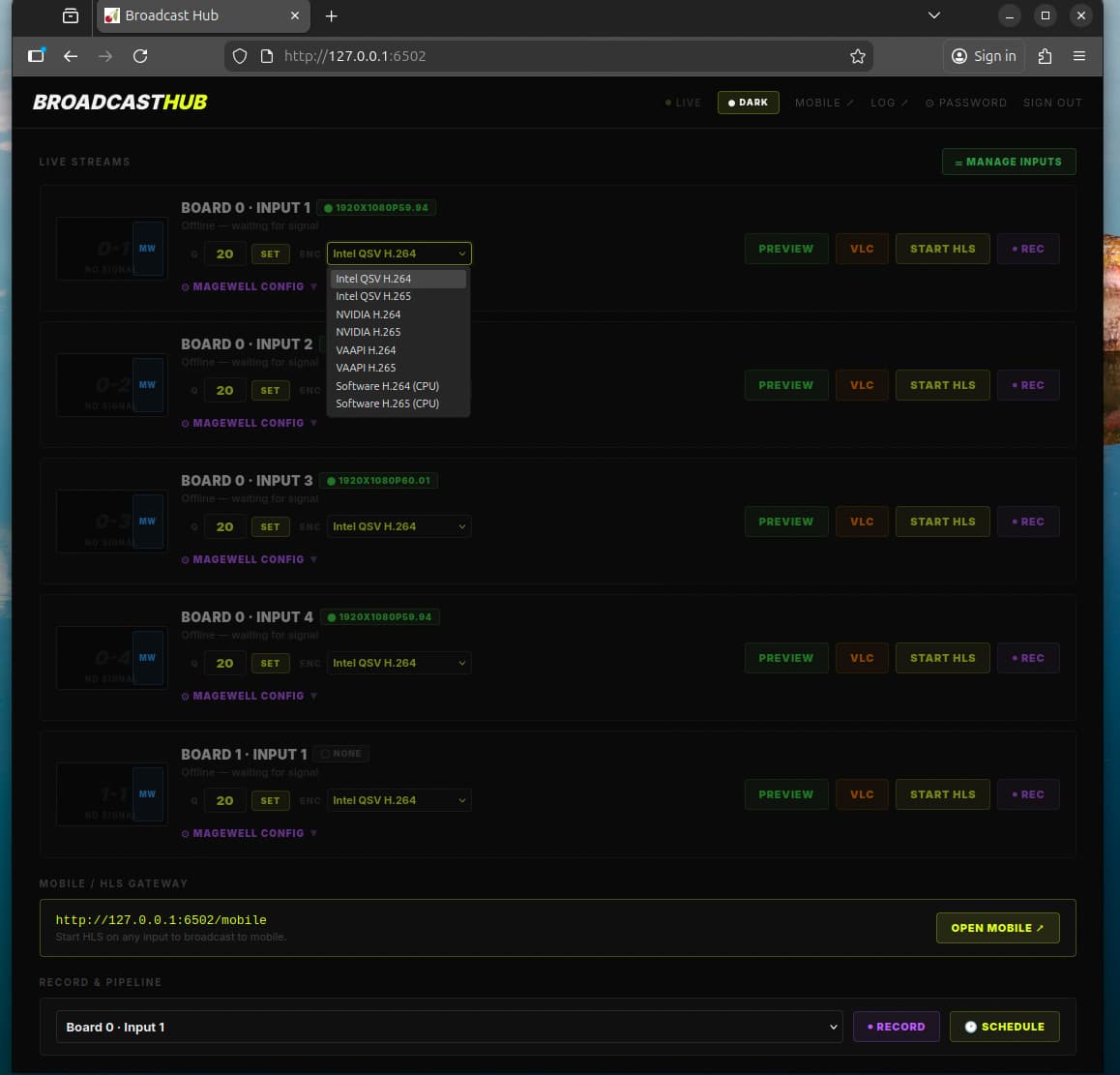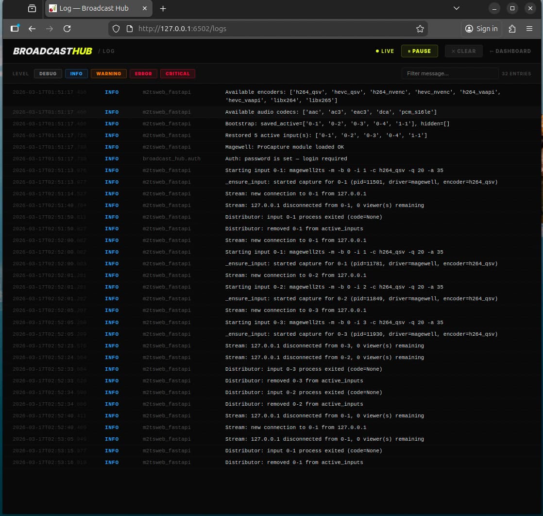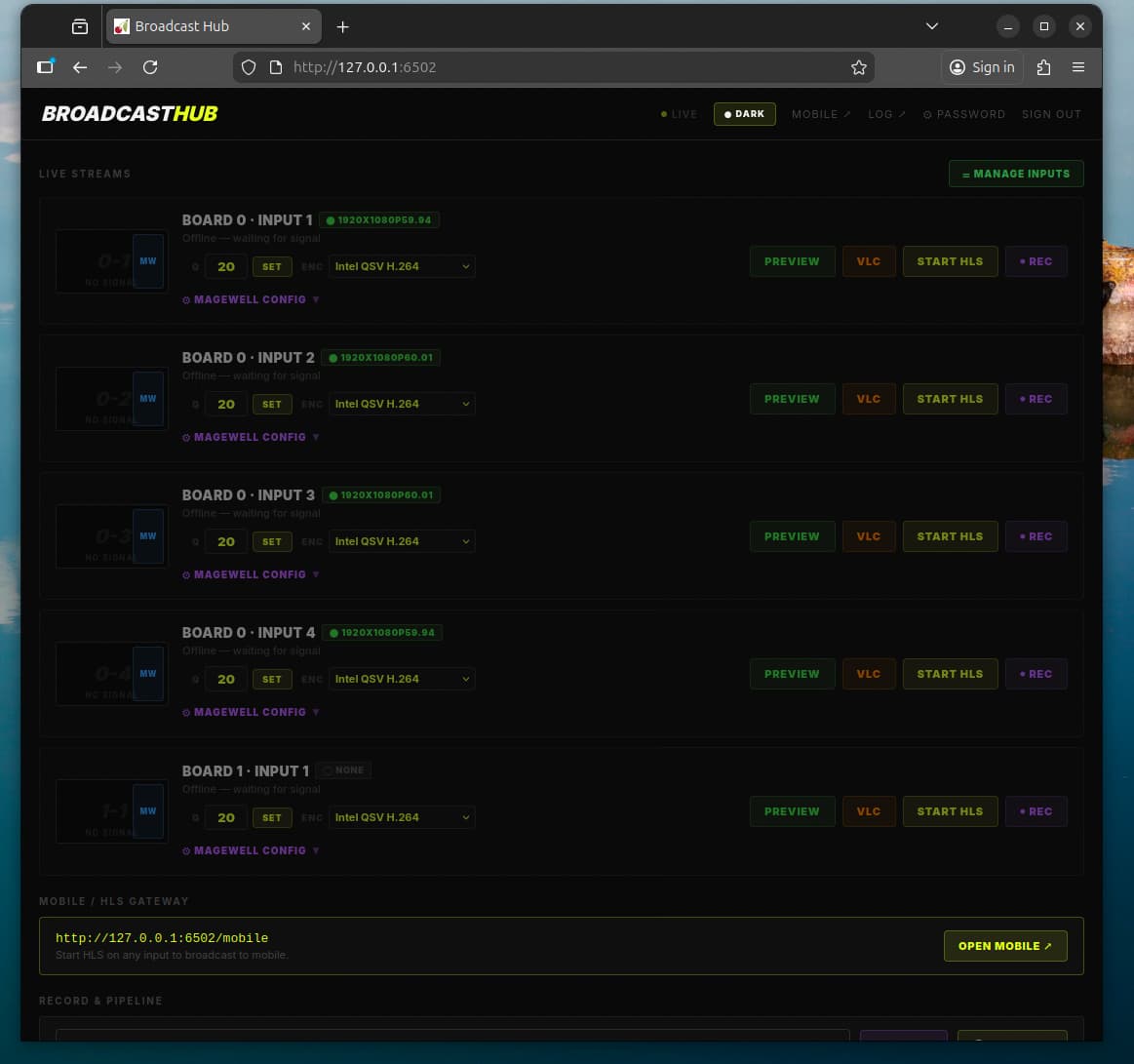 It is a script that broadcasts the feed going into the Magewell Pro cards over your local network so that it is accessible in the same way that your link pi or uray encoder is. This makes it possible for it to feed seamlessly into adbtuner.