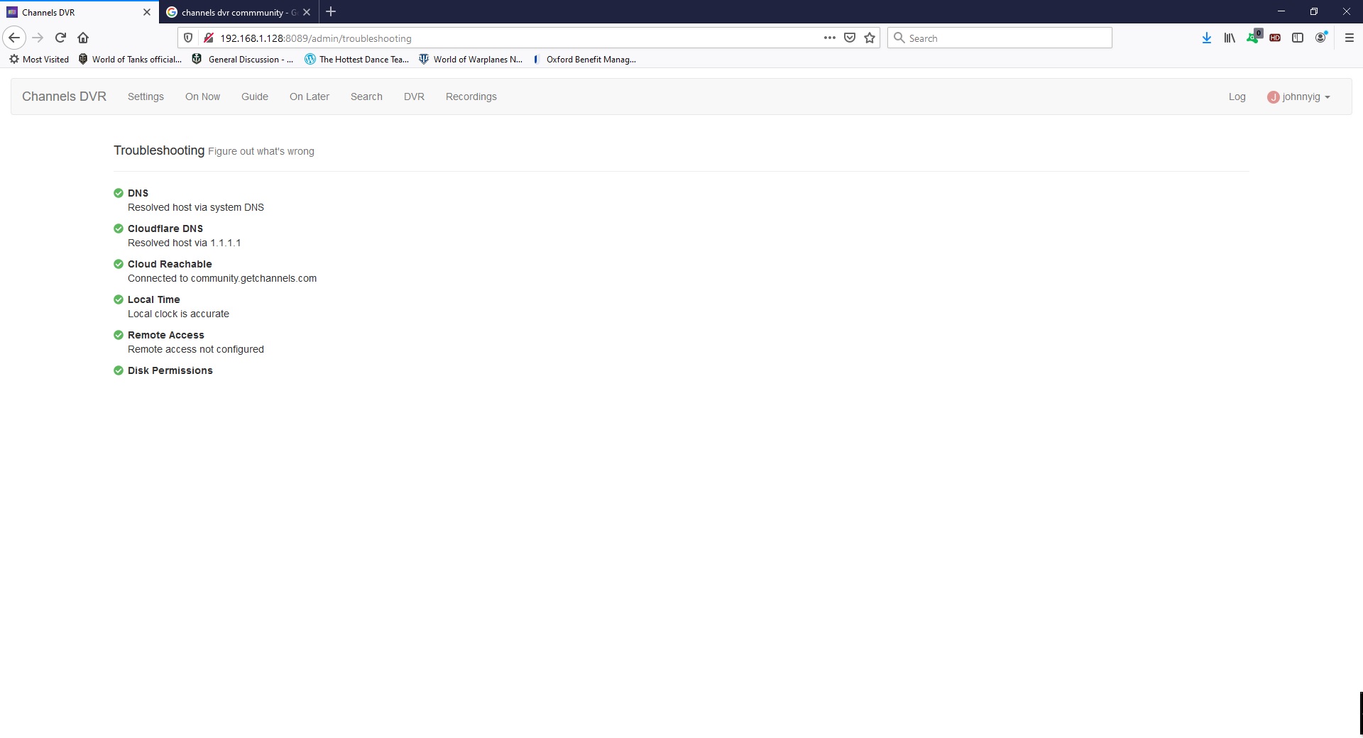 Ok here is a screenshot of the troubleshooter. and the DVR just updated today running on a new NVIDIA shield pro. version 2020.02.29.1935