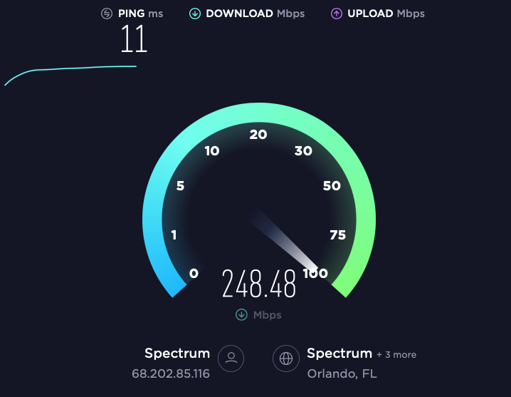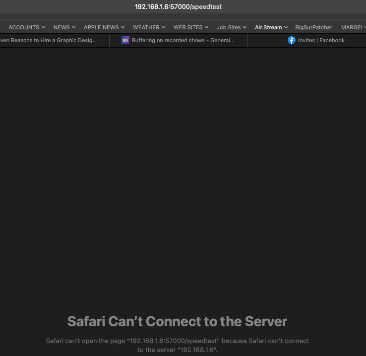 On Apple TV, first go to the system Settings app and note the IP address of your Apple TV. Then launch Channels and make sure it is visible on the screen. Finally, use a browser on another device like a computer or tablet to open http://x.x.x.x:57000/speedtest using the IP that you found for your Apple TV.