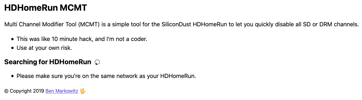 Hi - long time Channels user (and HDHomeRun user - I use the crappy HDHomeRun app on my Mac) I whipped this tool up today because I wanted to disable all the SD and DRM channels on my HDHomeRun at the source, and I didn't want to click each individual channel.