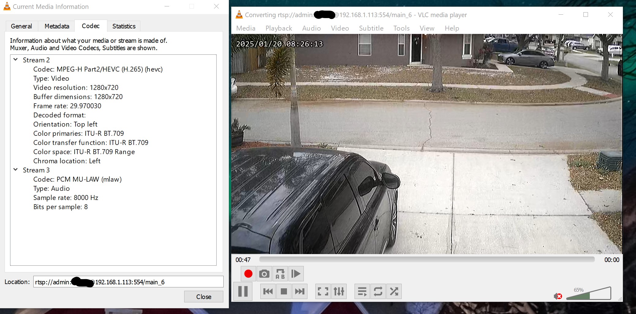 Situation: My TigerSecu TS-5MP-302M08 Security cameras work in VLC, but not working through Channels.