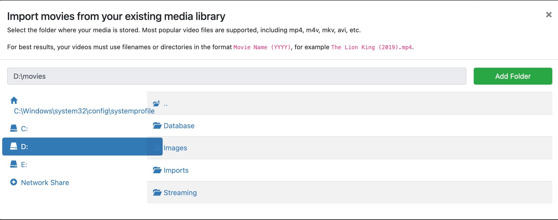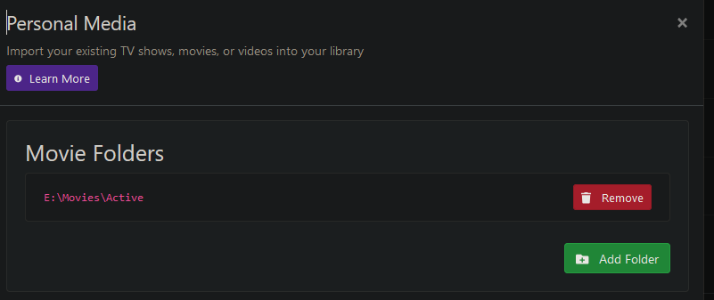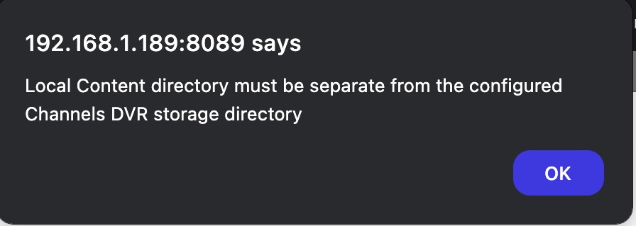 When I try to add D:\movies to 'Personal Media' it gives me that 'Local Content directory must be separate from the configured Channels DVR storage directory' message.