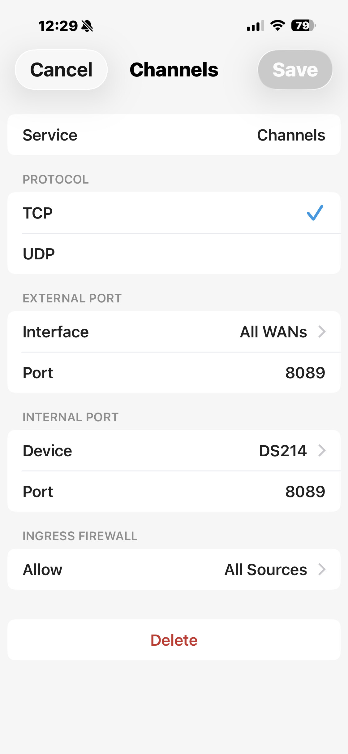 I deleted that port forward and created one manually with the same result. I removed all filters, etc from my Synology NAS (temporarily) and still no connection. I have remove access using the snology app, and other functions like an FTP but no luck.
