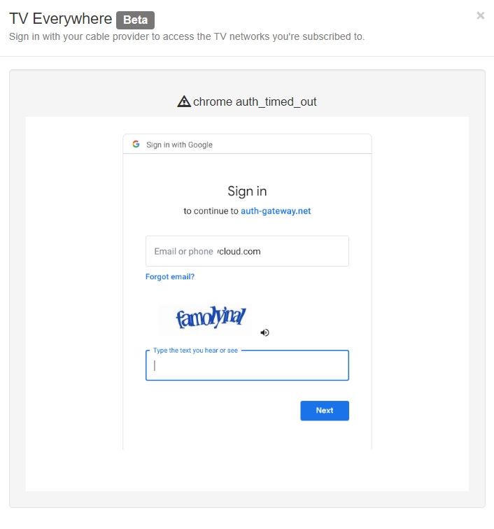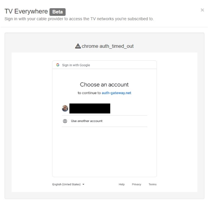 When Channels added TV Everywhere I logged in and used my Youtube TV subscription without any issue. I decided to let that expire and try some free trials for other providers over the past month or so... decided to go back to YTTV. Now, when I try to add it as a provider I am stuck at the auth screen and cannot add it. The screenshot is the Google login page with a drop-down asking to pick which account to use - I only have one... is there a way around this? Seems odd that it used to work fine and now I can't login.