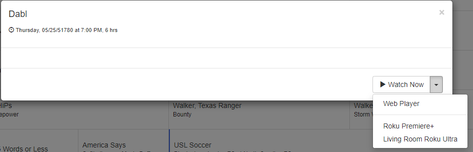 On the On Now and clicking right on the Guide grid itself. Using Chrome Browser. When I select Web Player its does nothing. Only channels with no info has this issue.