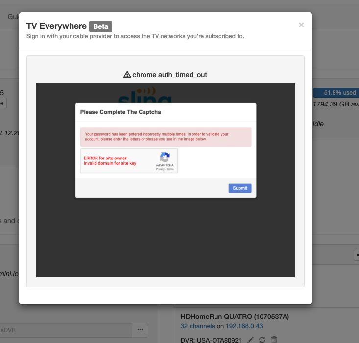 Lost the Red Zone and NFL suddenly on Sling TV. Tried re-scanning many times and it didn't work, decided to delete and re-add the service to TVE. Can't re-add it….