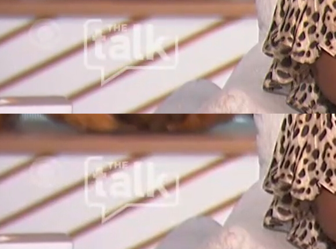 Skin looks more accurate, shirt looks better and cbs logo and text slightly better on top (channels) - is due to the deinterlace?