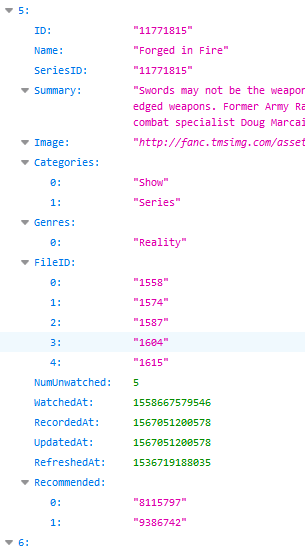 You can also click the gear icon for each episode you find under recordings and View Details to get the file id and search for it in that json data to see which show it thinks they're associated with.