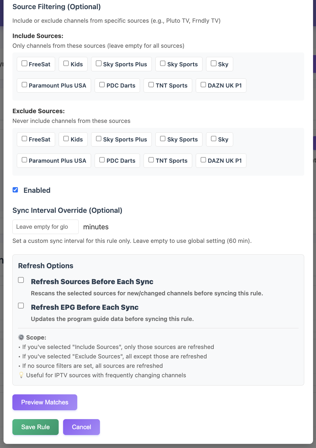 - IPTV sources - Handle constantly changing channel lineups