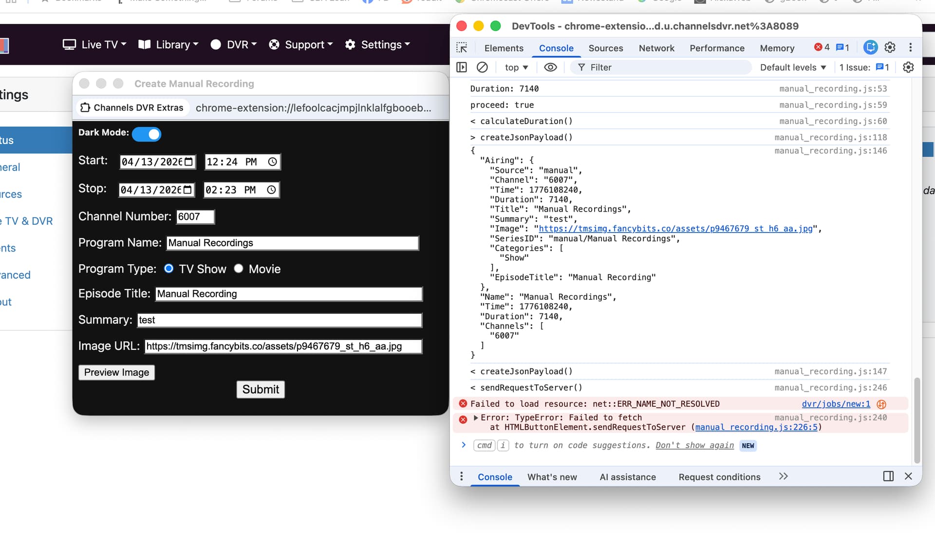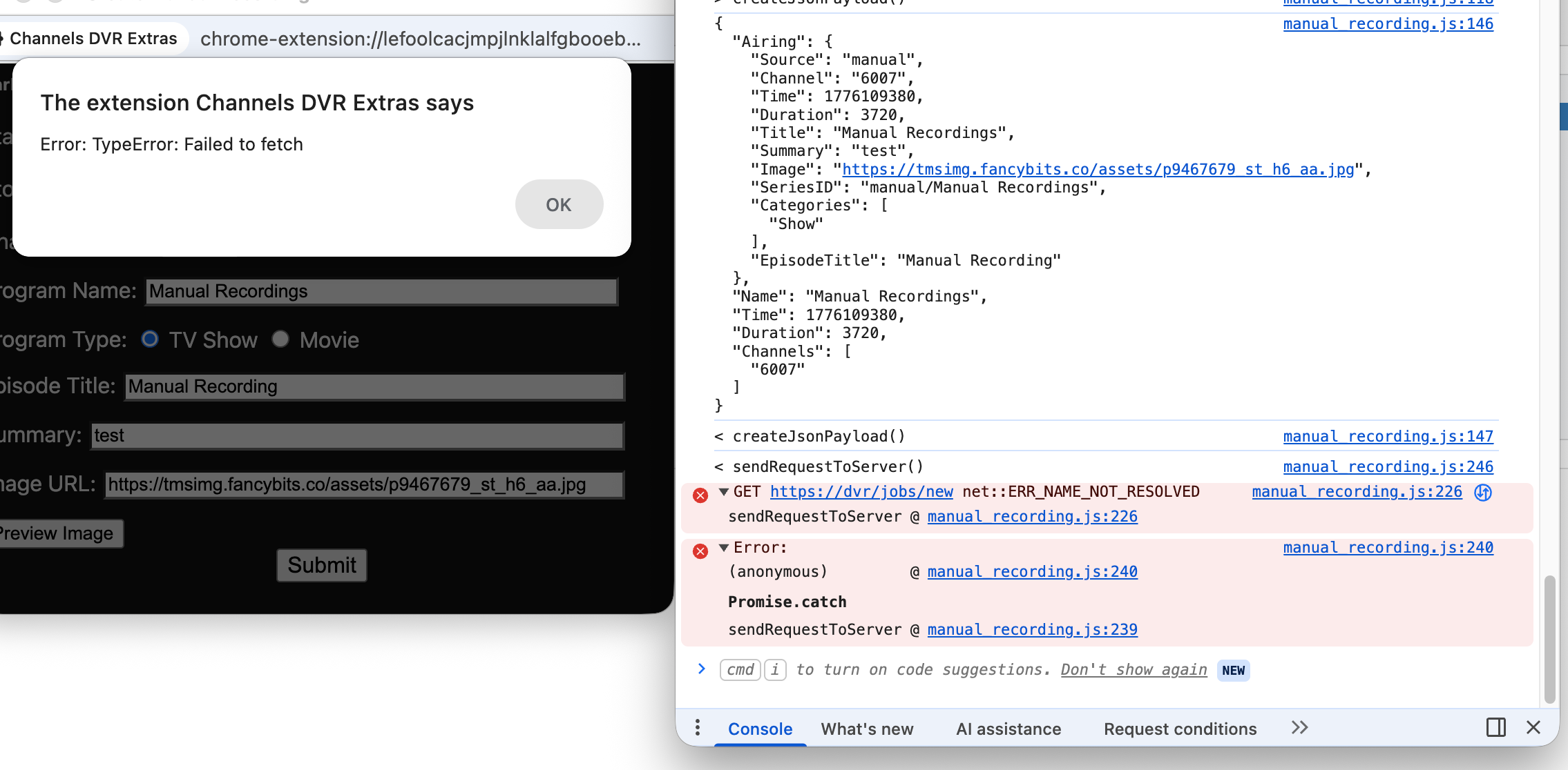 I'm not sure why this Chrome extension is giving me that "Failed to fetch" error when I try submitting a request. I'll try testing on another Mac or PC when I get a chance.