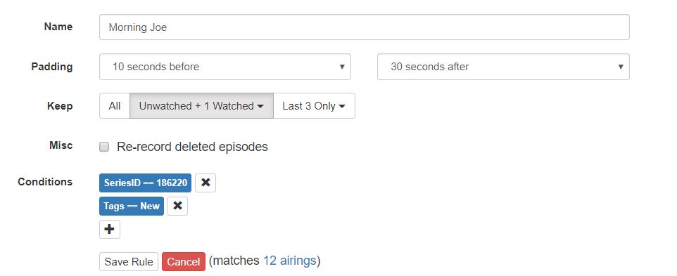 Sure, see attached. The weird thing is that the 5 recordings were all unwatched. My understanding is it would keep 3 unwatched and 1 watched based upon the settings. I had to manually delete two of them.