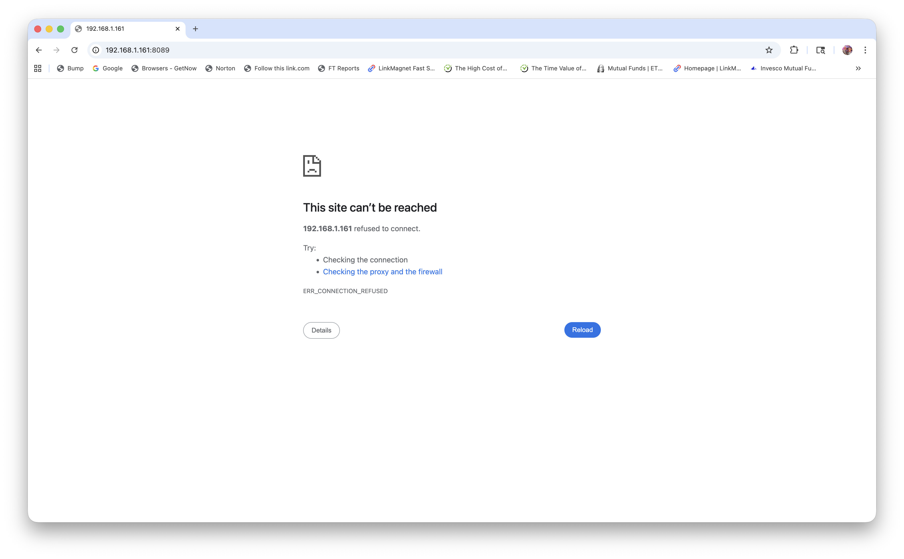 Since you said you have a Mac, are you able to login from the Mac that Channels is installed from? if so, have you tried using localhost:8089 or 127.0.0.1:8089 from the Mac to see if you have a network issue? If you can login using the local ip address, double check the IP address of the Channels DVR from the status page, perhaps your IP address changed for some reason.