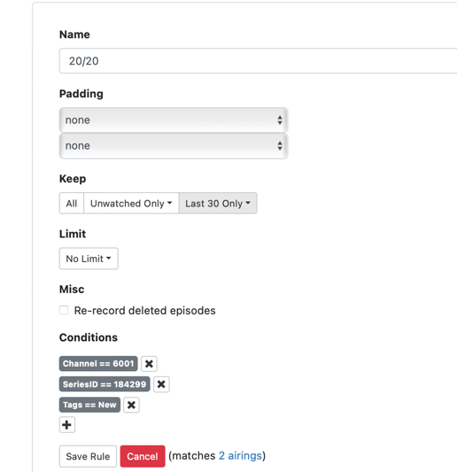 So my question is and or maybe it should be a feature request. Is there an option when setting up a pass to have it for both “new episodes” as well as “all episodes” only be recording for one channel? So in this situation I could tell it to only record “new episodes” from channel CBS?