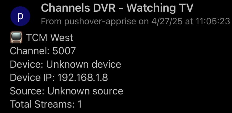 This is watching a Custom M3U channel from the Channels DVR web UI player and then an iPhone client.