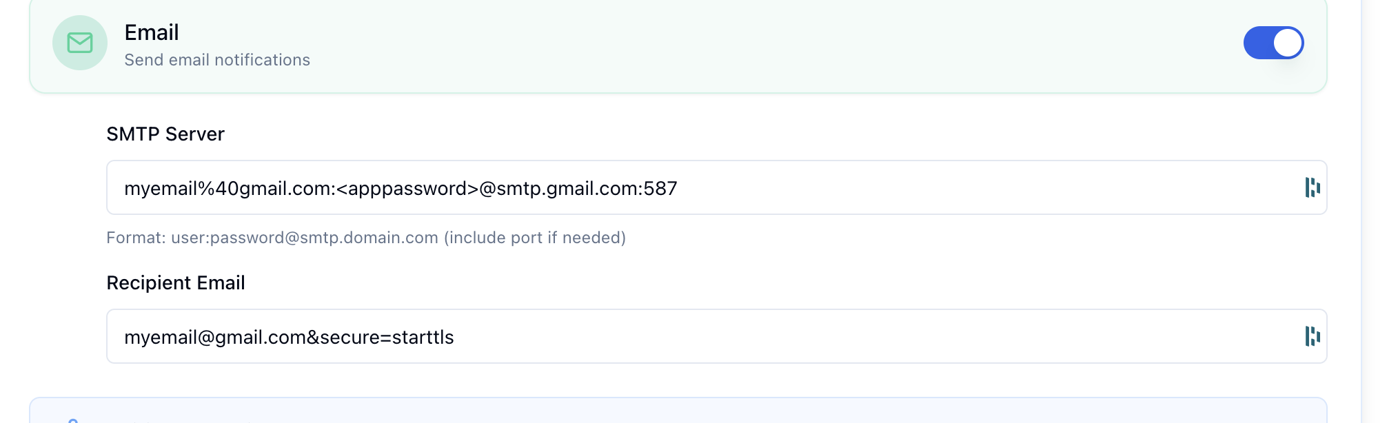 OK I got email alerts setup but I had to do some hacks to get it to not error out.