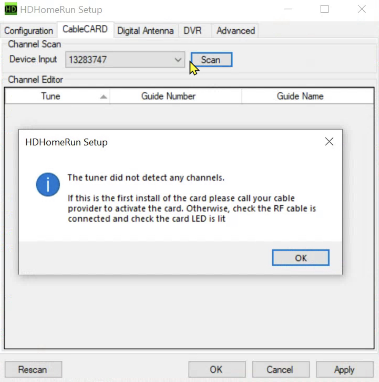 Same. I have OTA for "most" locals. But I can't get some of them. Also my mother needs cable. I have Spectrum Choice (A-LaCarte) package, and cDVR. But that's hers. I use ChannelsDVR, TVE, and now CableCard. I too only care about the locals, as I can record cable from TVE just fine. I'm on the phone with Spectrum now again. They wonder if the activation isn't going through right. It doesn't help the PCMCIA card has a dent in the bottom of the casing. If I should be getting something then I want to know. I have NO premiums, or channels that are beyond basic cable either. Sure recording from there would be nice. But It doesn't matter to me where Cable channels come from. But Antenna based locals HAVE to come from Spectrum.