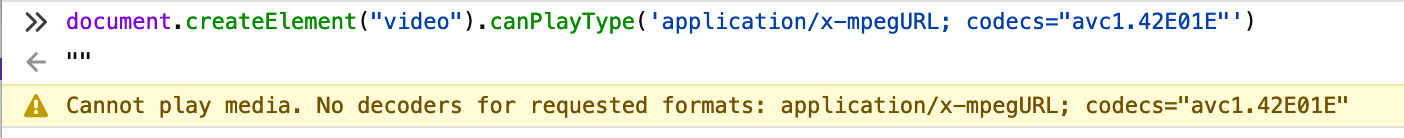 document.createElement("video").canPlayType('application/x-mpegURL; codecs="avc1.42E01E"')