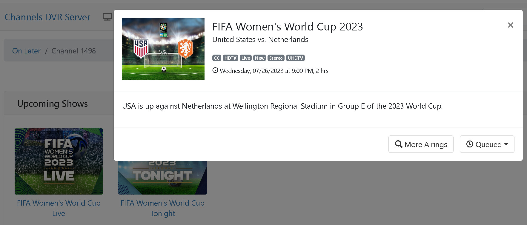 Thanks @jaidenc @bjr3! I'll make sure to add those tags. I used to have FiOS, so I'm familiar with their dedicated channels, sadly... I'm in a Spectrum area now, so I have to rely on some TVE options. Wish the gracenotes data would denote for those channels, but oh well - I'll have to take what I can get I suppose.