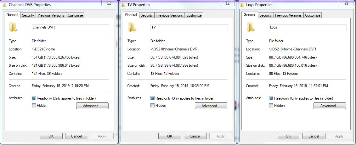 See below for some screen captures of the folder sizes and a sample comskip folder.